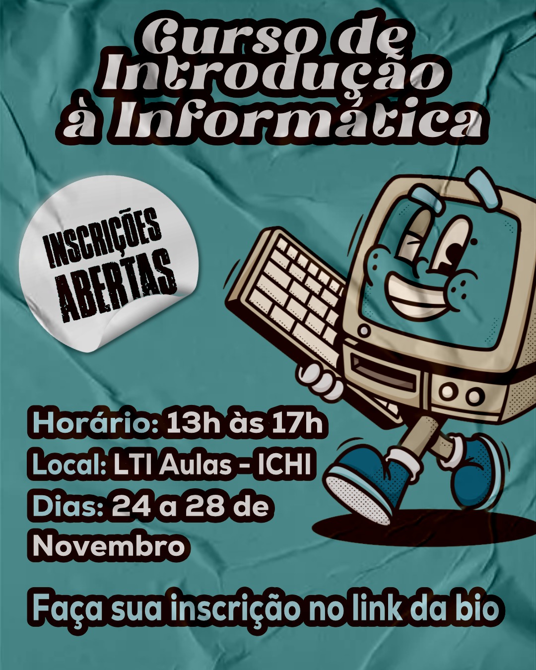 O Instituto de Ciências Humanas e da Informação (ICHI/FURG) convida a comunidade acadêmica para participar da segunda edição do Curso de Introdução à Informática, voltado a quem deseja fortalecer seus conhecimentos em informática básica e desenvolver maior autonomia no uso das tecnologias digitais.