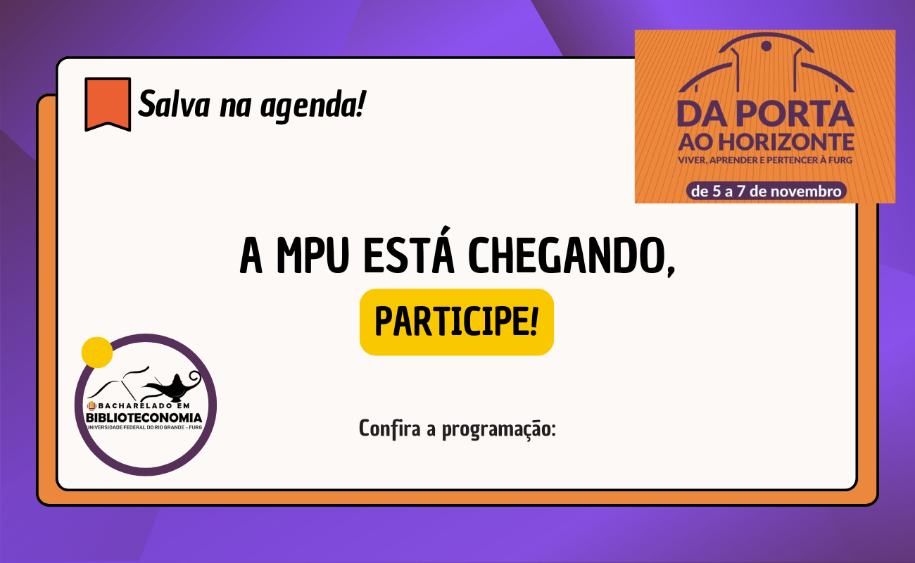 Entre os dias 05 e 07 de novembro de 2025 ocorre a Mostra da Produção Universitária da FURG (MPU).